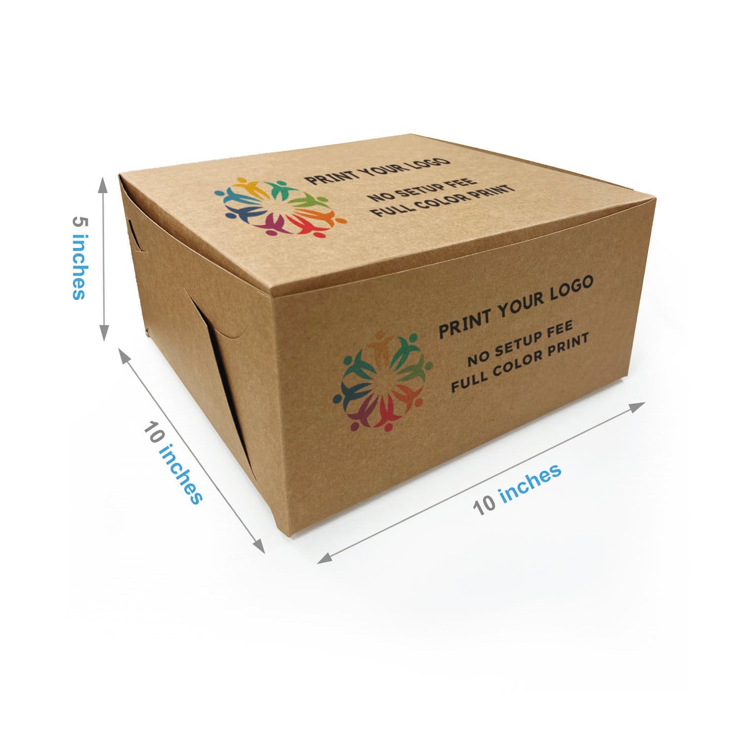 10" x 10" x 5" - Custom Kraft Bakery Boxes - Carton of 100 - KIS PAPER - 5331; Full Color Custom Print, Printed in Canada; $1.3/pc